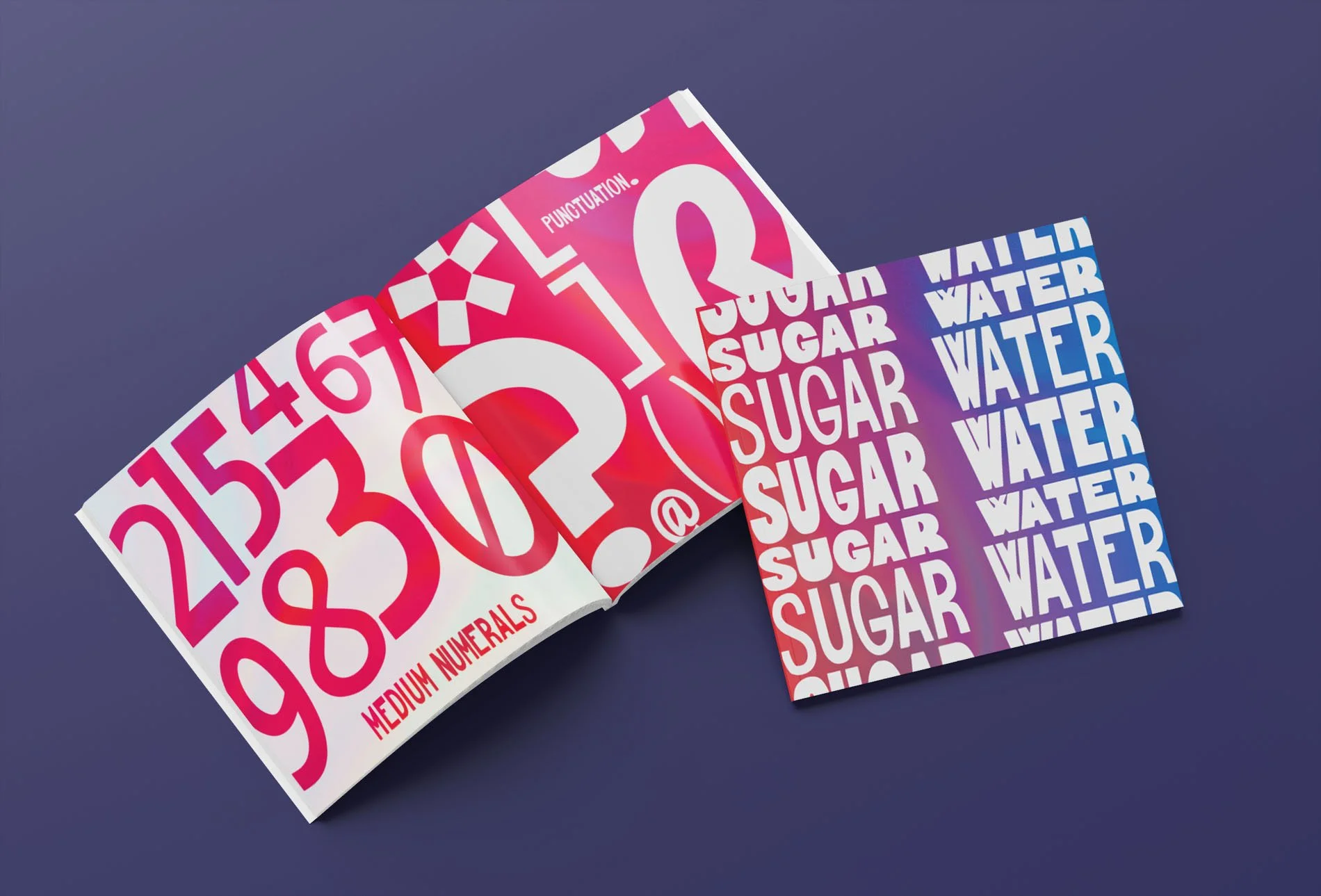 The final deliverable for this project was a type specimen book. With this, I wanted to really showcase the characteristics of Sugar Water in a way that went all out in celebrating what the font can do while paying homage to the music that inspired it.