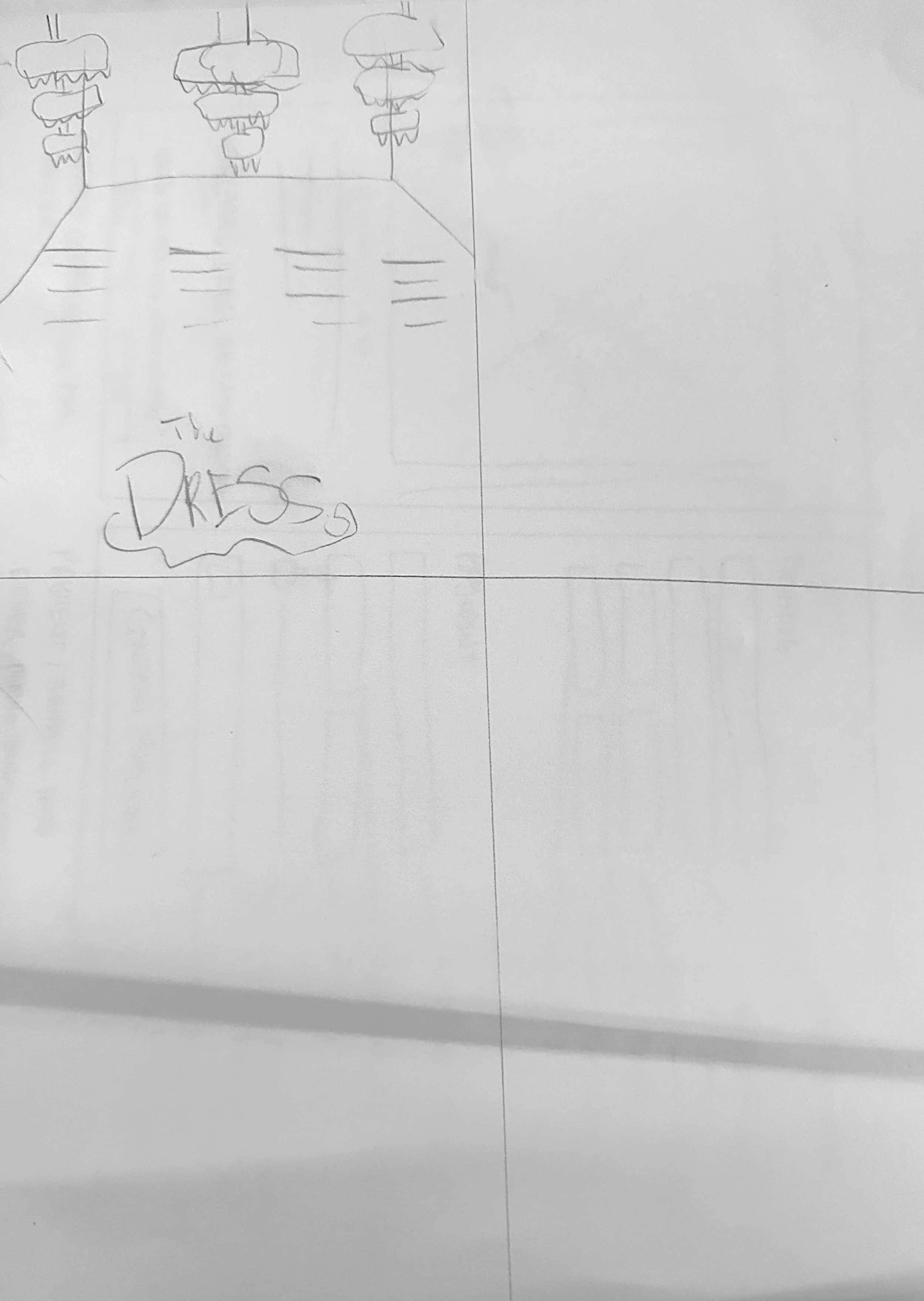 For the poster sketches, I wanted the imagery of a flowing dress, and for the folds of cloth to act as motion to guide the viewer's eyes through the composition. I also considered having a ballroom act as a background, as the lyrics include mention of dancing throughout. Really, I just wanted a general sense of where I wanted to place information.