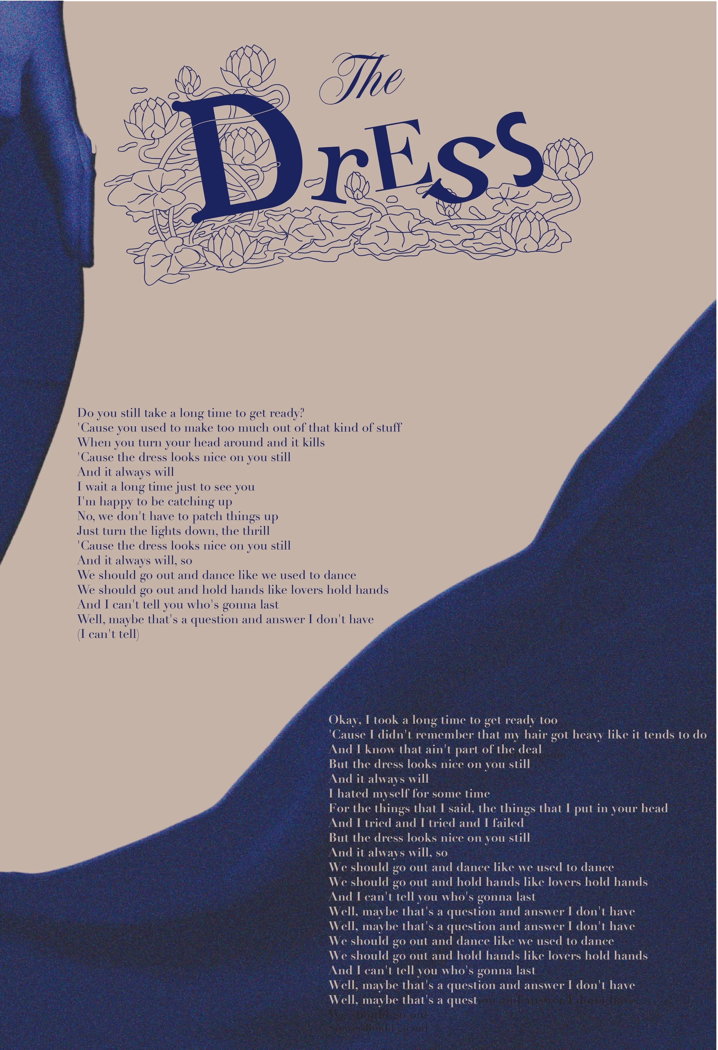 With this project I was assigned to create a logotype based off of a song or poem, and then create a lyric poster using that logotype, and afterwards, to translate that poster into an Instagram carousel. I chose "The Dress" by Dijon as my song, as it is one of my all time favorites. It is a romantic ballad about yearning for a past relationship and an attempted rekindling that feels so sweet and soulful. I attempted to capture that nostalgia and chase of a lost spark throughout my solutions.