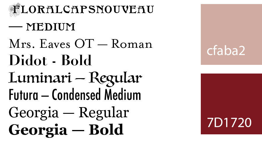 For the palette, I went with a maroon red, and a faded pink background to truly enhance the romanticism of the composition.