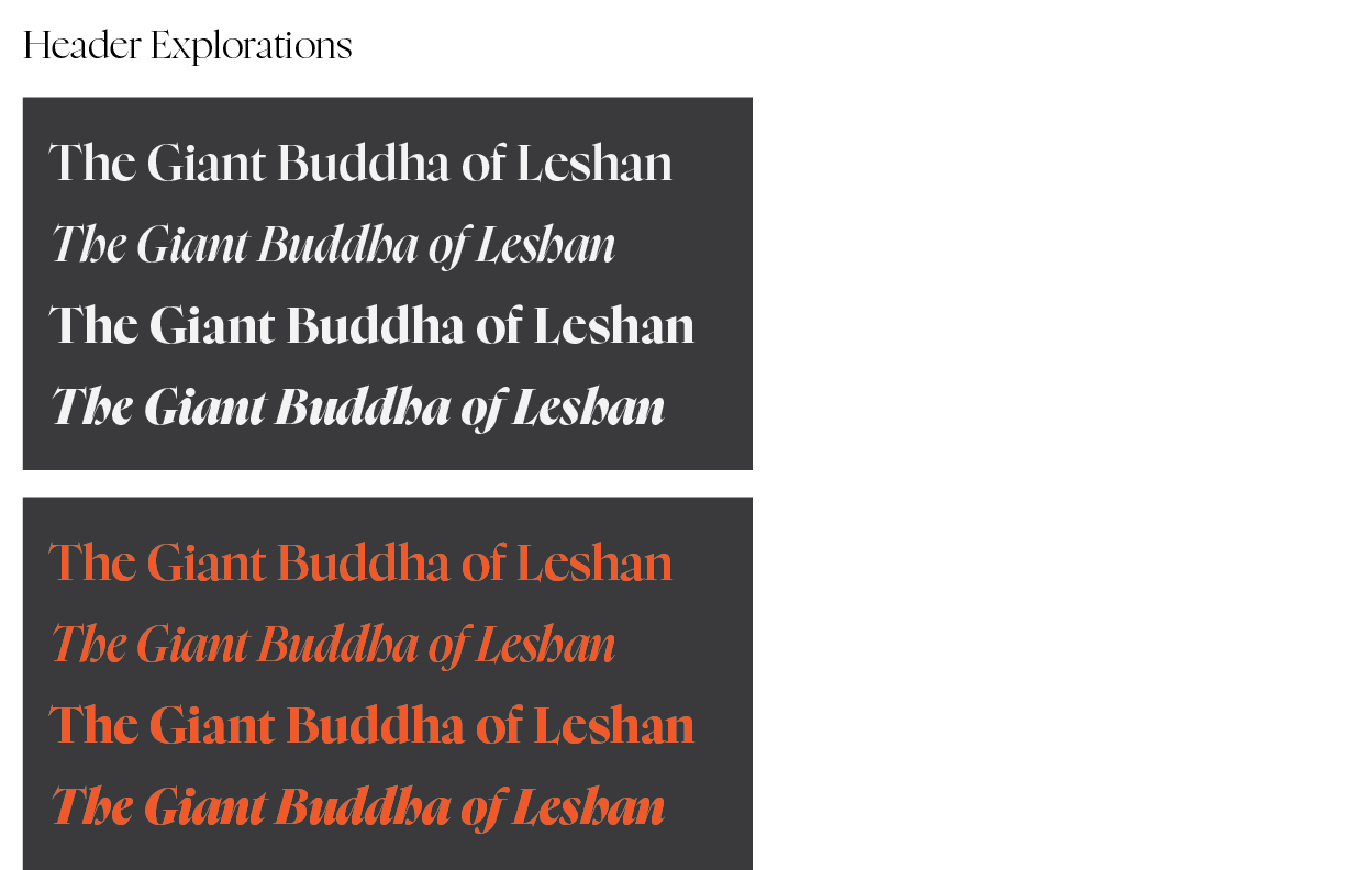 I was heavily inspired by photography that highlighted the scale and beauty of the Leshan Buddha and paintings that depicted Buddhas using vibrant and saturated colors. In the early process stages, I sought to see how I could merge these two worlds. With the type, I was considering serifs that would add to the elegance I was trying to portray in the composition. Additionally, I wanted to match that with the name of the Buddha written in Chinese.