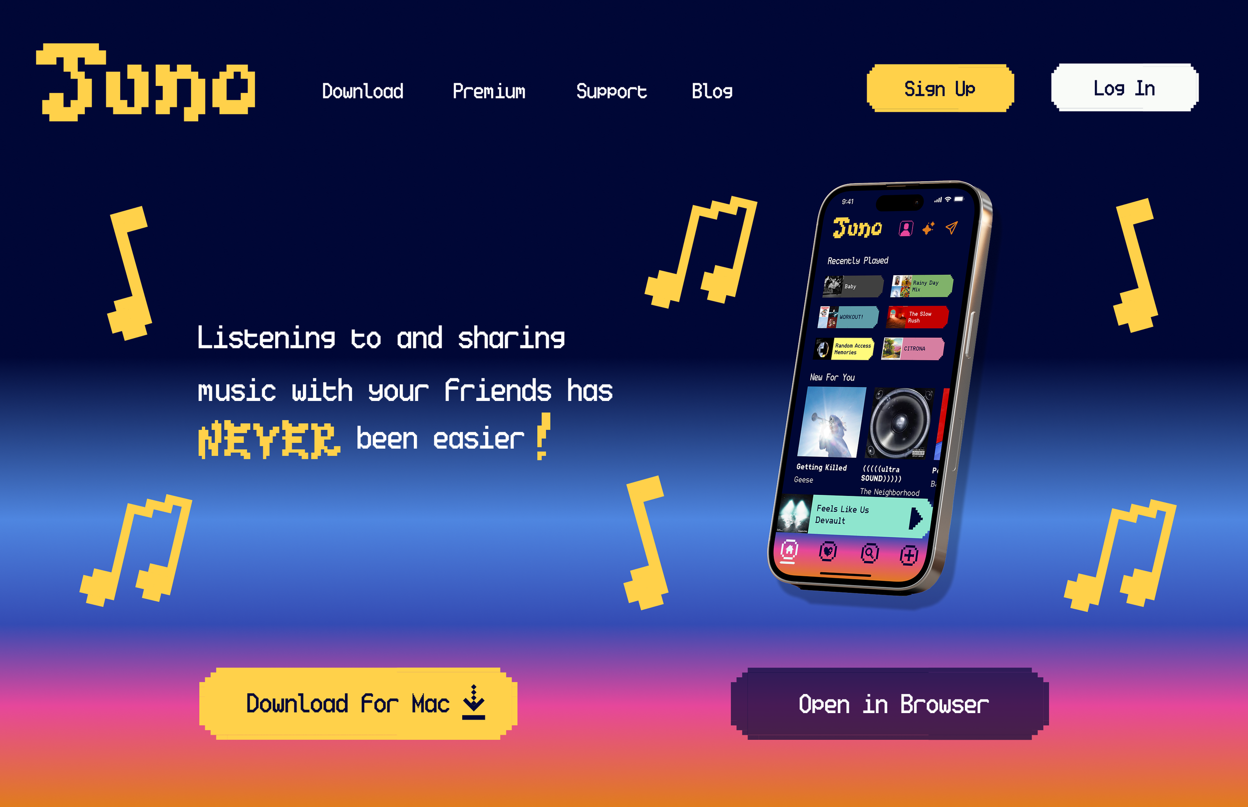 The final UI was directly connect to the primary class project. In my case, it was for my partner and I’s music streaming app. This was my take on a mobile and desktop landing page. Our design system was a very opinionated, bold, and colorful one, and I implemented our elements from it to provide a window into the larger app.