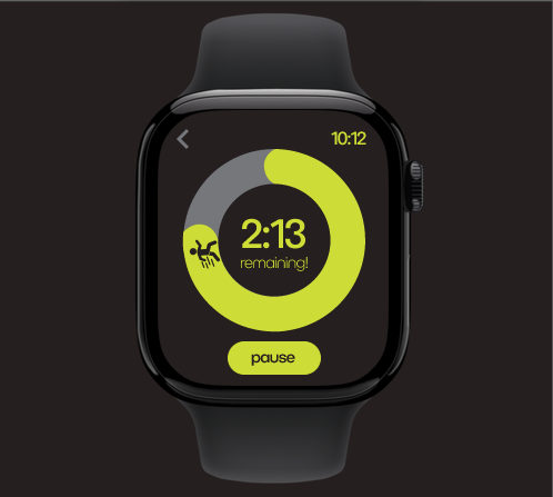 Here we were specifically tasked with designing for a smart watch format. Working within the limited space was challenging, but ultimately I am satisfied with the interface. Were this an animated interface, the little icon would start stationary before running the course of the timer.